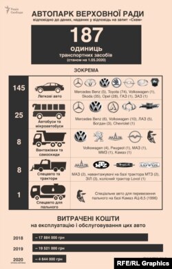 «Усі автомобілі автобази використовуються для автотранспортного обслуговування діяльності Верховної Ради України, її апарату, народних депутатів України, парламентських комітетів, депутатських фракцій та груп, а також парламентських делегацій, що прибувають з-за кордону на запрошення Верховної Ради з офіційними та робочими візитами, інших протокольних заходів», – розповіли Радіо Свобода в парламенті.