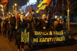 На мітингу, який передував ході, учасники подякували українським військовослужбовцям та добровольцям, які перебувають в зоні ООС, а також розкритикували новорічне звернення президента Володимира Зеленського
