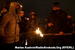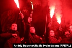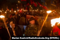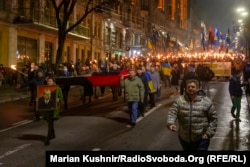 У п’ятницю ввечері кілька сотень людей пройшлися центром Києва з нагоди 112-ї річниці від дня народження лідера Організації українських націоналістів Степана Бандери.