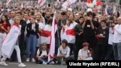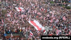 На початку дня в Мінську йшов дощ, і прогнозували, що акція може бути менш чисельною. Пізніше дощ закінчився, а міські вулиці заповнили десятки тисяч людей із біло-червоно-білими прапорами, повідомляє білоруська служба Радіо Свобода.