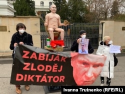 На площі Бориса Нємцова у Празі 16 квітня учасники активістської групи «Капутін» провели протестну акцію біля російського посольства. Під час протесту вони встановили постамент, на якому розташували «золотий» унітаз, та на який посадили зроблену заздалегідь ляльку, схожу на роздягненого президента Росії Володимира Путіна, повідомляє кореспондент Радіо Свобода.