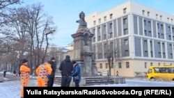 Під час демонтажу пам’ятника російському поету Олександру Пушкіну в місті Дніпрі, 16 грудня 2022 року