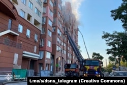 «У багатоповерхівці понівечені чотири поверхи. Там у квартирах, ймовірно, заблоковані люди. Як і в автівках навколо місця ракетної атаки. В одному з під'їздів потрощеного будинку сталося займання», – додав він.