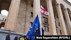 Прихильники та лідери прокремлівського радикального угруповання «Альт-Інфо» та партії «Консервативний рух» зірвали прапор ЄС біля будівлі парламенту Грузії, повідомляє проєкт Радіо Свобода «Ехо Кавказу». Крім того, вони спалили на акції біля законодавчого органу кілька прапорів Євросоюзу.