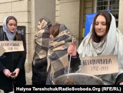 Як пояснили самі учасники журналістам, мета акції – нагадати про відповідальність у Голодоморі Радянського Союзу, правонаступницею якого вважає себе сучасна Росія.