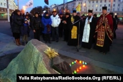 Поминальну молитву по жертвах Голодоморів відслужили священники Православної церкви України, духовенство Михайлівського золотоверхого монастиря.