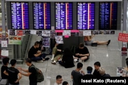 Міжнародний аеропорт Гонконгу другий день поспіль зупиняє всі вильоти через протестувальників, які перебувають у будівлі летовища.