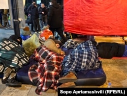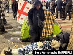 Увечері 17 листопада після мітингу протестувальники встановили близько 30 наметів біля Тбіліського державного університету. Учасникам акції роздали пледи, килимки та гарячий чай, привезли біотуалети. Ніч минула спокійно: опозиціонерів не розігнали, зараз вони спілкуються, дивляться фільми та танцюють. Влада та поліція жодних заяв поки не робили.