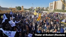 Сили безпеки Іраку застосували сльозогінний газ поблизу посольства США в Багдаді, а охорона всередині будівлі кидала шумові гранати, щоб розігнати протестувальників, які штурмували диппредставництво на знак протесту проти американських авіаударів.