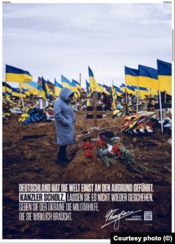 Російський опозиціонер і тринадцятий чемпіон світу з шахів Гаррі Каспаров викупив у німецькій газеті Bild сторінку реклами, розмістивши на ній фотографію цвинтаря, де поховані українські військові, і заклик до канцлера Німеччини Олафа Шольца надати Україні необхідну для неї військову допомогу.