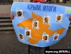 За його словами, пікети пройшли в центрі Москви 17 березня. Їхні учасники тримали в руках плакати «Крим.Підсумки» (з іменами в’язнів Кремля), «Список Олега Сенцова», «Крим вам замість пенсій».