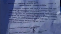 «Співробітники прикордонної служби ФСБ 19 грудня 2019 року на одному з пунктів пропуску при в'їзді в Крим вручили громадянину України, який їхав до Криму на похорон батька, документ, в якому сказано, що йому до 1 лютого 2054 року заборонено в’їжджати на територію Росії, в тому числі в окупований Росією Крим», – йдеться в повідомленні.