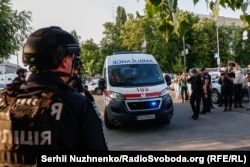 Поліція і «швидкі» біля будівлі Шевченківського райсуду Києва, 5 липня 2023 року