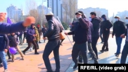 Як повідомляє Радіо Азаттик, киргизька служба Радіо Свобода, невідомі в масках били жінок, виривали у них транспаранти і розкидали їх. Після прибуття міліції нападники втекли.