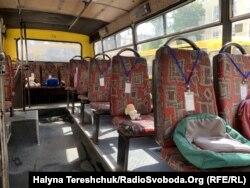 Вісім шкільних автобусів приїхали на площу Ринок у Львові. Але у них всі місця – порожні. На кріслах – записки з іменами вбитих російськими військовими українських дітей, а також – м’які іграшки і наплічники.