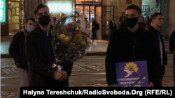 До заходу також приєднались кілька активістів громадської організації «Традиція і порядок», які принесли букет квітів із жалобною стрічкою і напис «ОПЗЖ». Як пояснили Радіо Свобода активісти, вони у такий символічний спосіб хочуть нагадати Вікторові Медведчуку, лідерові проросійської партії «Опозиційна платформа – За життя», що не варто наступати на правдиві сторінки історії і свободу слова.