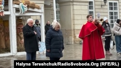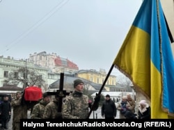 Похоронна процесія розпочалася молитвою у Гарнізонному храмі у Львові, звідки хоронять українських воїнів з 2014 року.