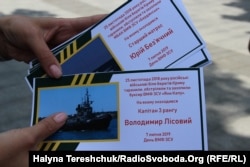 «Це просвітницька акція, щоб нагадати людям про полонених українських моряків, щоб вони знали, що про них в Україні не забули. На листівках намальовані кораблі і написані прізвища полонених моряків, які несли на них службу», – каже учасник акції Вадим Дмитрук.
