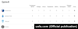 За два тури до кінця «Динамо» й данський «Копенгаген» мають по шість очок. «Мальме» іде третім із п’ятьома очками в активі.