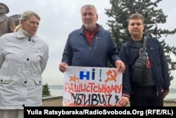 У Дніпрі, біля пам’ятника Василю Маргелову, 26 квітня відбулася акція «Окупанти – не герої». Її організувала громадська організація родин загиблих українських військовослужбовців «Родинне коло загиблих героїв».