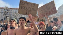 Під час акції одна з її учасниць роздягнулася, її завели у приміщення КМДА. Після цього почали роздягатися інші учасники протесту.