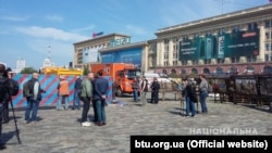 Він додав, що автомобільні патрулі стежать за ситуацією безпосередньо біля намету, а також ведеться відеоспостереження кількома камерами. До охорони місця розташування волонтерського намету також залучено сили батальну поліції особливого призначення ГУНП в Харківській області.