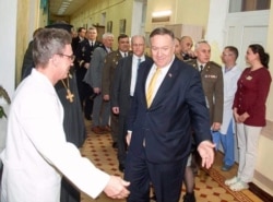 «Майк Помпео відвідав поранених українських воїнів, які перебувають на лікуванні у травматологічному відділенні Національного військово-медичного клінічного центру «Київський військовий клінічний госпіталь». Він також завітав до госпітального храму Покрови Пресвятої Богородиці Православної церкви України», – йдеться в повідомленні відомства.