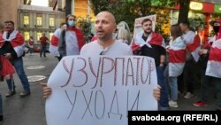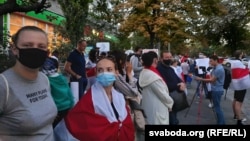 Учасники акції скандували «Хай живе Білорусь», «Саша, йди!», «Свобода».