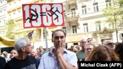 Як повідомляє кореспондент Радіо Свобода, акція покладання квітів перетворилася на гучну демонстрацію проти чеського прем’єра Андрея Бабіша, який взяв участь у заході вшанування загиблих.