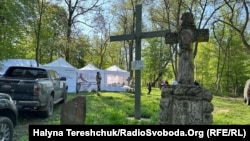 Неподалік від місця, де проводиться ексгумація, зводять укриття.