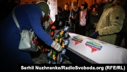 Кілька сотень людей прийшли на акцію «Похорон правосуддя. Річниця «справи Шеремета» під Офіс президента 12 грудня, передає кореспондент Радіо Свобода.