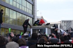 Територію біля суду оточила поліція. Декілька мітингувальників залізли на огорожу поблизу будівлі з прапорами Грузії та України. За повідомленнями, виникла невелика сутичка мітингувальників з правоохоронцями, останні застосували перцевий спрей. Декільком демонстрантам знадобилася медична допомога.