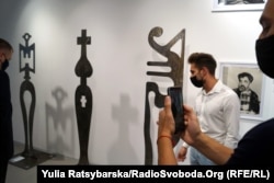 «Тут представлені роботи з металу, з кераміки, з гіпсу, з дерева, техніка гарячої емалі, графіка. Це ті матеріали, з якими працював Сідур. І ми тяжіли до них, ми не використовували пластик чи якісь сучасні матеріали», – розповіла вона.