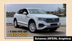 Volkswagen Touareg 2020 року випуску в грудні 2020 року з автосалону придбав тесть Соболевського Андрій Борисенко, який тоді вже був на пенсії. Вартість авта на момент купівлі – 2 мільйони гривень, на той час це було понад 70 тисяч доларів. Тесть Соболевського з 1998-го по кінець 2020 року – по дату набуття автівки – офіційно заробив 618 тисяч гривень. Та ще з 2015 року отримував пенсію, в середньому 6 тисяч гривень на місяць. Різниця між всіма доходами і вартістю автівки – майже мільйон гривень.