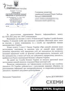 У відповіді Ради нацбезпеки, зокрема, йдеться: «Рада національної безпеки і оборони України розглядає питання щодо застосування, скасування та внесення змін до санкцій виключно на підставі пропозицій Верховної Ради України, президента України, Кабінету міністрів України, Національного банку України, Служби безпеки України. У разі надходження пропозицій щодо застосування санкцій стосовно зазначеної у Вашому запиті особи від уповноважених Законом України «Про санкції» державних органів вони будуть винесені на розгляд РНБО України в установленому порядку».