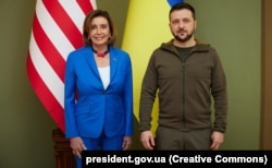 Посередині світлини: президент України Володимир Зеленський і спікерка нижньої палати Конгресу США Ненсі Пелосі під час зустрічі в Києві, 30 квітня 2022 року
