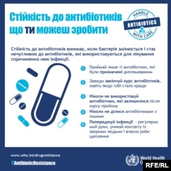 ВООЗ рекомендує використовувати антибіотики тільки за призначенням лікаря (а лікарям – розумно їх призначати) і завжди повністю проходити курс лікування, а не зупиняти прийом антибіотиків відразу після поліпшення самопочуття.