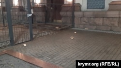 Як повідомляє кореспондент проєкту Радіо Свобода Крим.Реалії, активісти принесли личаки (російською «лапти») і кидали їх на територію посольства. Їм почали чинити спротив співробітники поліції.