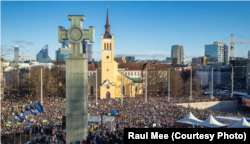 Понад 30 тисяч людей зібралися на площі Свободи в центрі столиці Естонії Талліні 26 лютого, щоб висловити свою підтримку Україні і протест проти російської агресії. Таку кількість демонстрантів нарахувало МВС країни.