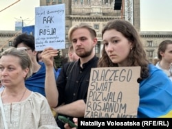 Люди тримали у руках з написами «Що страшніше Росія чи рак?», «Чому світ дозволяє росіянами вбивати наших дітей?», «Росіяни, горіть у пеклі».