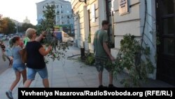 Після знесення паркану активісти знову вирушили до будівлі мерії. Частина учасників акції взяла з собою гілки дерев, спиляних забудовником у сквері 7 серпня, які залишили біля входу в адмінбудівлю.