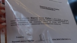 На підтвердження цього вона продемонструвала Радіо Свобода депутатське звернення своєї колеги по парламенту – членкині фракції «Слуга народу» Анастасії Красносільської, – датоване 31 жовтня 2019 року.