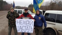 Учасники блокади російських вантажівок у Житомирській області, фото 13 лютого 2016 року