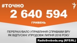 2 640 594 гривень перерахувало управління справами Верховної Ради України народним депутатам і власним працівникам як відпускні упродовж липня 2016 року. Така інформація міститься на порталі використання публічних коштів, повідомляє #Точно, проект Радіо Свобода.