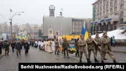 На майдані Незалежності в Києві 18 лютого відбувається віче, приурочене до третіх роковин початку розстрілу активістів Революції гідності. У заході бере участь близько півтисячі людей.