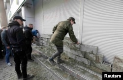 Вони замурували центральний вхід до фінустанови бетонними блоками.