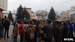 В Івано-Франківську позачергова сесія облради і народне віче відбулися сьогодні біля будівлі облдержадміністрації. Їх ініціювали прикарпатські активісти і депутати, «враховуючи суспільно-політичну ситуацію у зв’язку із силовим розгоном учасників блокади торгівлі з окупованими районами Донецької та Луганської областей».