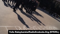 У центрі Дніпра двісті поліцейських сформували «живий тризуб»