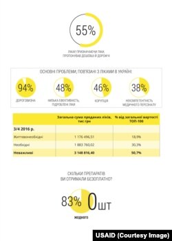Як повідомили в USAID, головною проблемою 94% пацієнтів, які брали участь у фокус-групах, вважають саме дороговизну препаратів. При цьому 48% пацієнтів скаржаться на підробки і неякісні ліки. А відсоток тих, хто вдається до самолікування, сягає майже 70%.