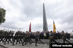 «Урочиста хода на чолі з главою держави пройшла Алеєю Воїнської Слави до могили Невідомого солдата. Президент поклав квіти до пам’ятника. Учасники церемонії вшанували хвилиною мовчання пам'ять загиблих у Другій світовій війні. Військовий оркестр виконав Державний гімн України, воїни Почесної варти салютували з особистої зброї шістьма залпами. Завершив церемонію урочистий марш воїнів Почесної варти», – ідеться в повідомленні.